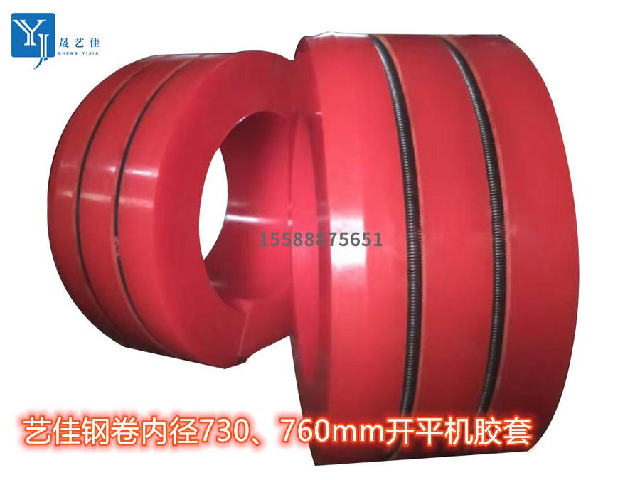2、如需開平鋼卷內(nèi)徑610mm鋼卷,則需要相應(yīng)的聚氨酯增徑膠套來完成卷筒直徑的轉(zhuǎn)換。開平機(jī)聚氨酯增徑膠套一般有50mm和55mm厚兩種尺寸,寬度有200mm、300mm等型號(hào)